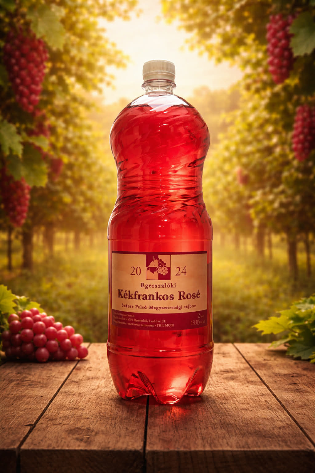 Egri Borvidéken saját termelésű szőlőből készült Kékfrankos Rozé száraz bor.