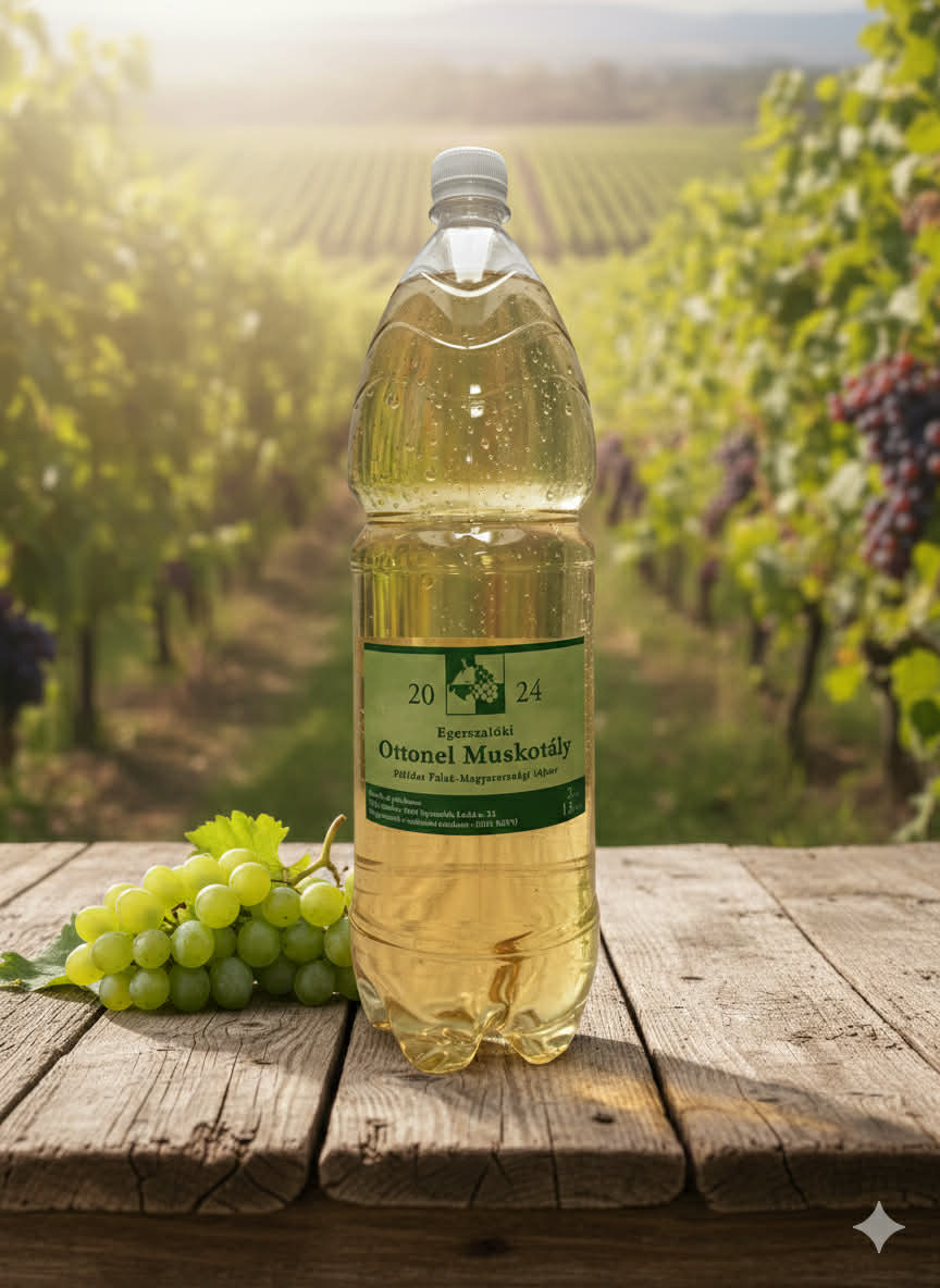 Egri Borvidéken saját termelésű szőlőből készült Ottonel Muskotály félédes Bor.